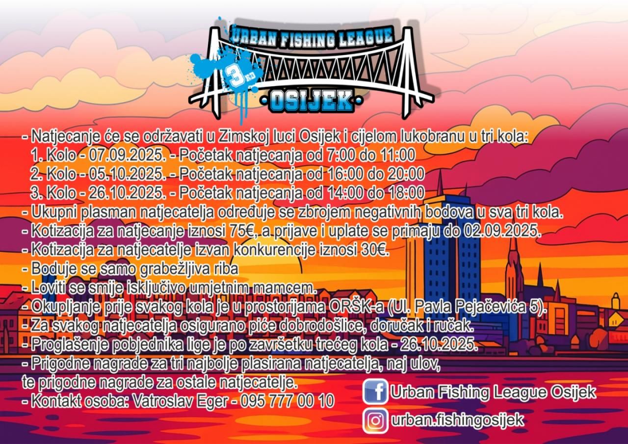 Pozivamo Vas na Urban Fishing League Osijek 3! Liga će se održati kao i prijašnjih godina na istoj lokaciji.